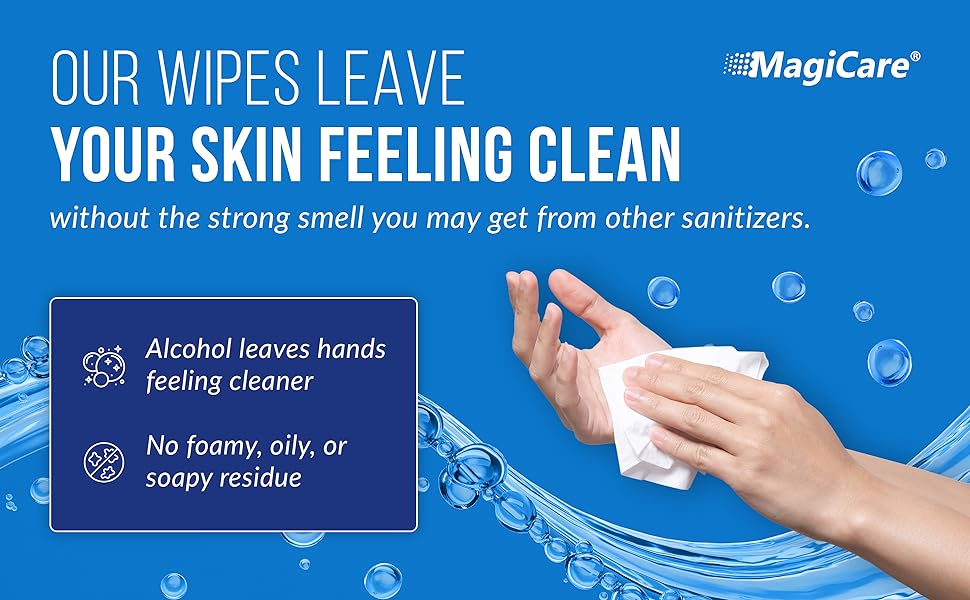 MagiCare 75% Alcohol Hand Sanitizing Wipes (1 pack of 80ct wipes) Disposable, Premium, Unscented Large Alcohol Wipes - Travel, Home, Classroom, Camping